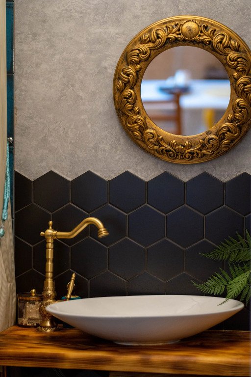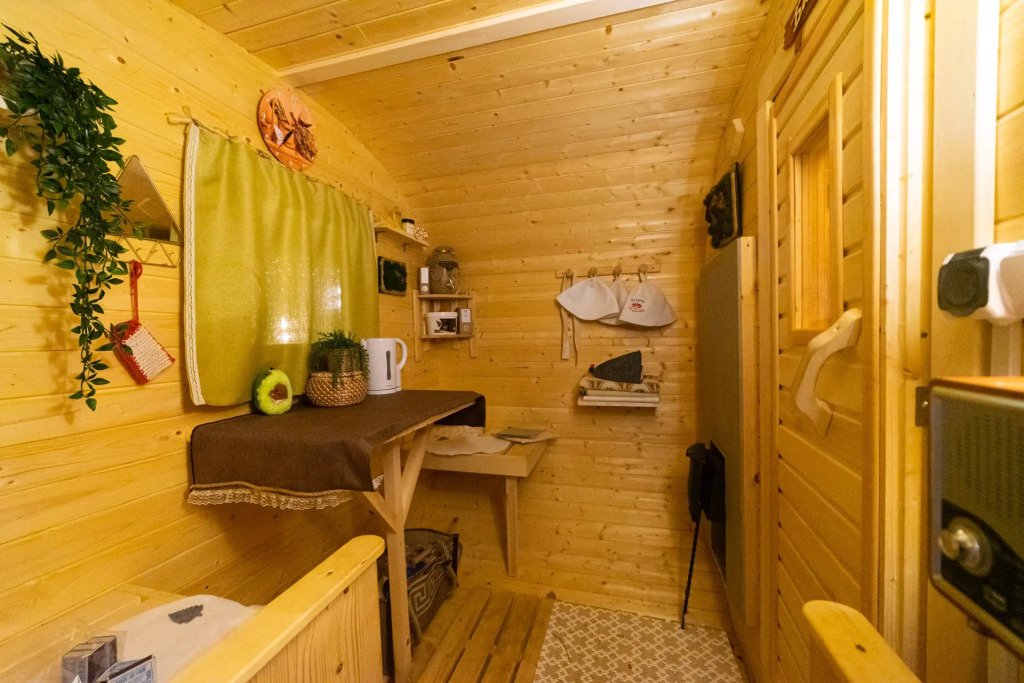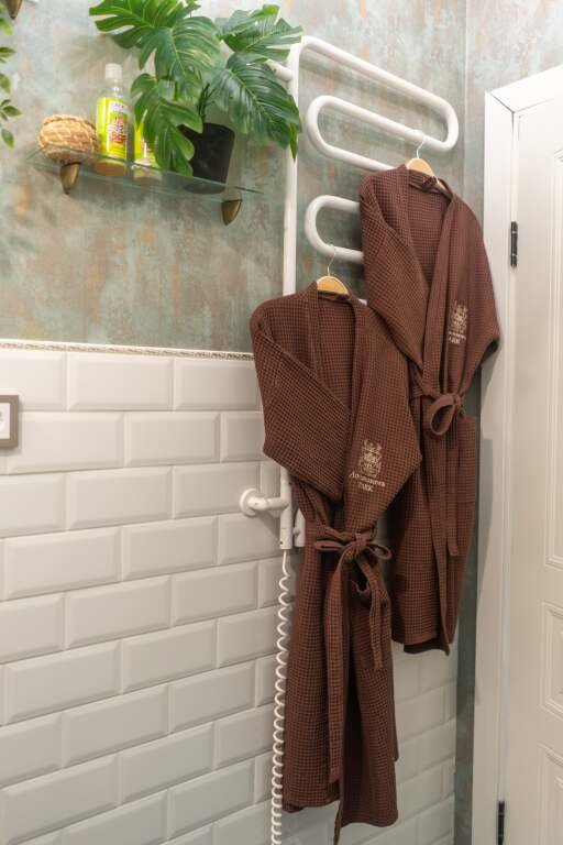 В распоряжении гостей: махровые тапочки, по 3 полотенца на каждого гостя, зубные щётки и паста, гигиенические принадлежности (скраб для тела, гель для душа, маска для лица, масла для тела и волос). А также чай, кофе, сливки, соль, сахар и сахарозаменитель.