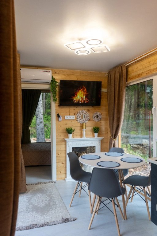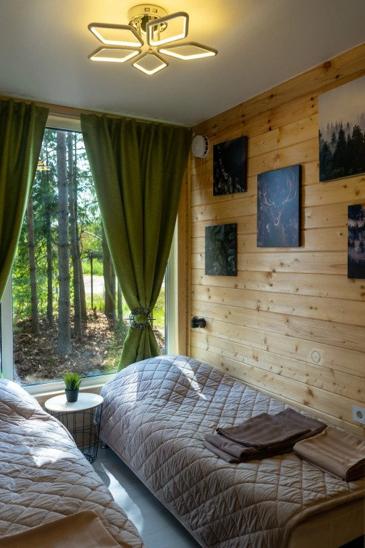 Размещение в коттедже доступно для 2 гостей. При размещении 3 гостей предоставляется спальное место — раскладной диван. Возможно размещение с 1 или 2 детьми.
