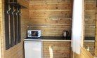 Чайник и микроволновая печь есть в зоне кухни, в каждом домике.