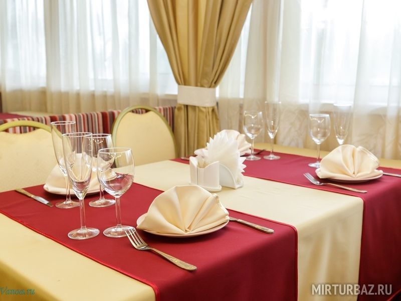 На территории комплекса работает ресторан украинской и европейской кухни с банкетным залом. В теплое время года открыто летнее кафе.
