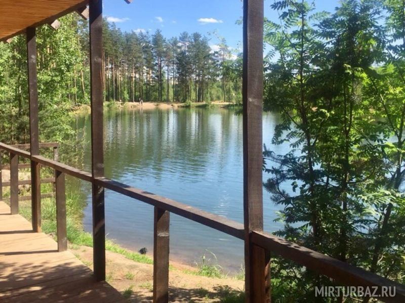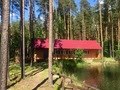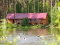 Уютный деревянный домик в лесополосе у озера послужит прекрасным пристанищем как для любителей активного отдыха на свежем воздухе, так и для семейной поездки за город.