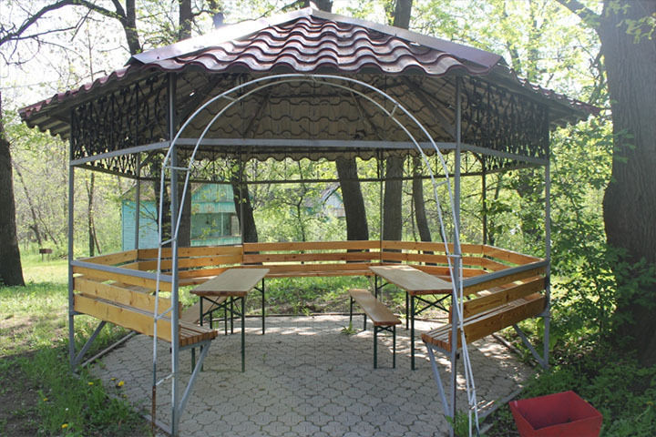 - Малая беседка, находится возле административного здания, возле фонтана, мангал. Вместимость до 10 человек.