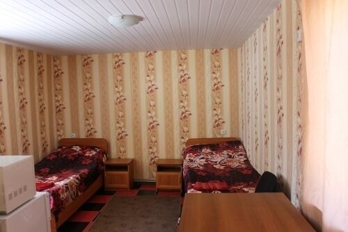 1 номер. Две кровати, раковина, постель, холодильник. Удобства на этаже.