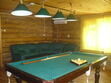 На 1 этаже: бильярдная с двумя раскладными диванами, телевизором и сплит-системой, банкетный зал на 20 человек со сплит-системой и музыкальным центром, коридор с холодильником, кухня (микроволновая печь, чайник, плитка, кухонный гарнитур с посудой на 10 персон), бассейн, душевая, сауна, санузел, выход на веранду.
