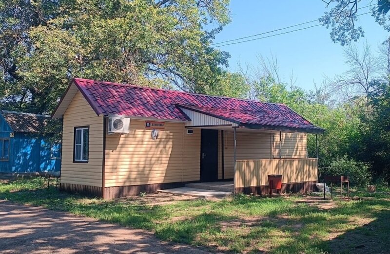 Одноэтажный коттедж на 4 человека. Кухня с посудой, электрочайник, микроволновка, эл.плитка, холодильник, туалет, душ, кондиционер, слит-система, двухспальная кровать, диван.