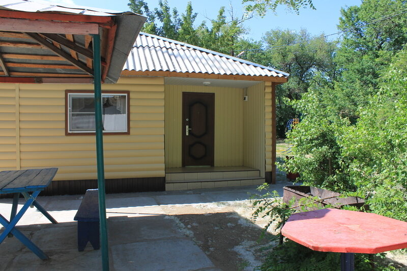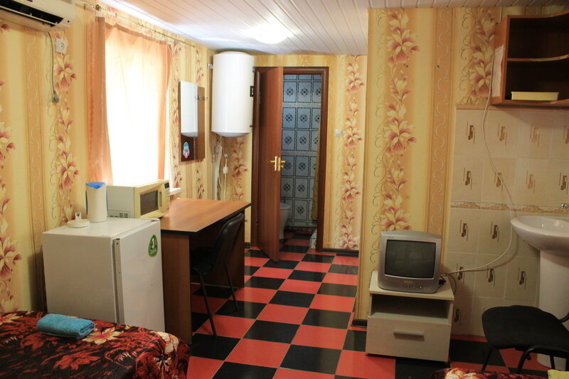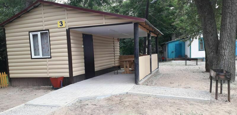 Одноэтажный домик рядом с выходом на пляж. Беседка. Туалет, душ, сплит система, посуда, холодильник , телевизор, микроволновка, электрочайник. Спальня, кухня.