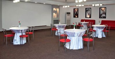 - Большой зал. Зал для пышных торжеств вместимостью 350 человек. Имеется сцена для проведения праздничной программы.