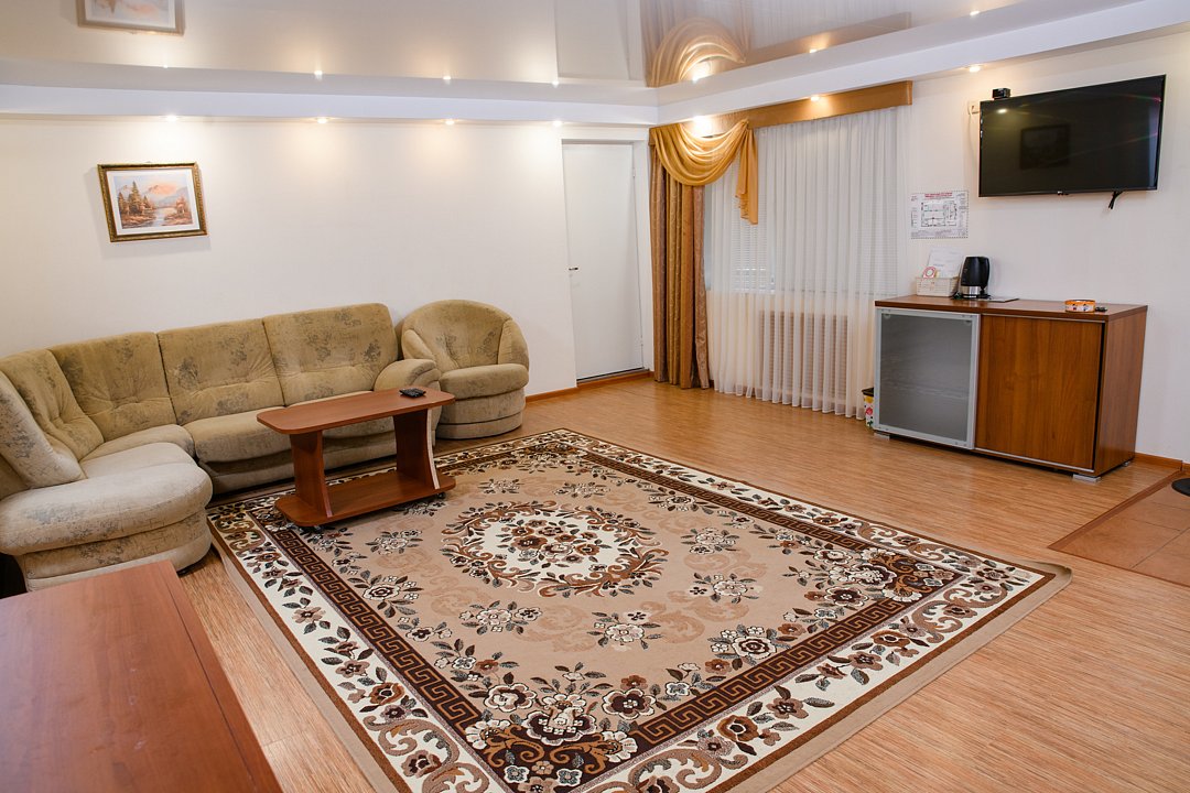 Современный комфортабельный номер «Люкс», состоящий из двух комнат — гостиной и спальни.