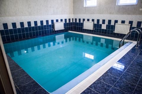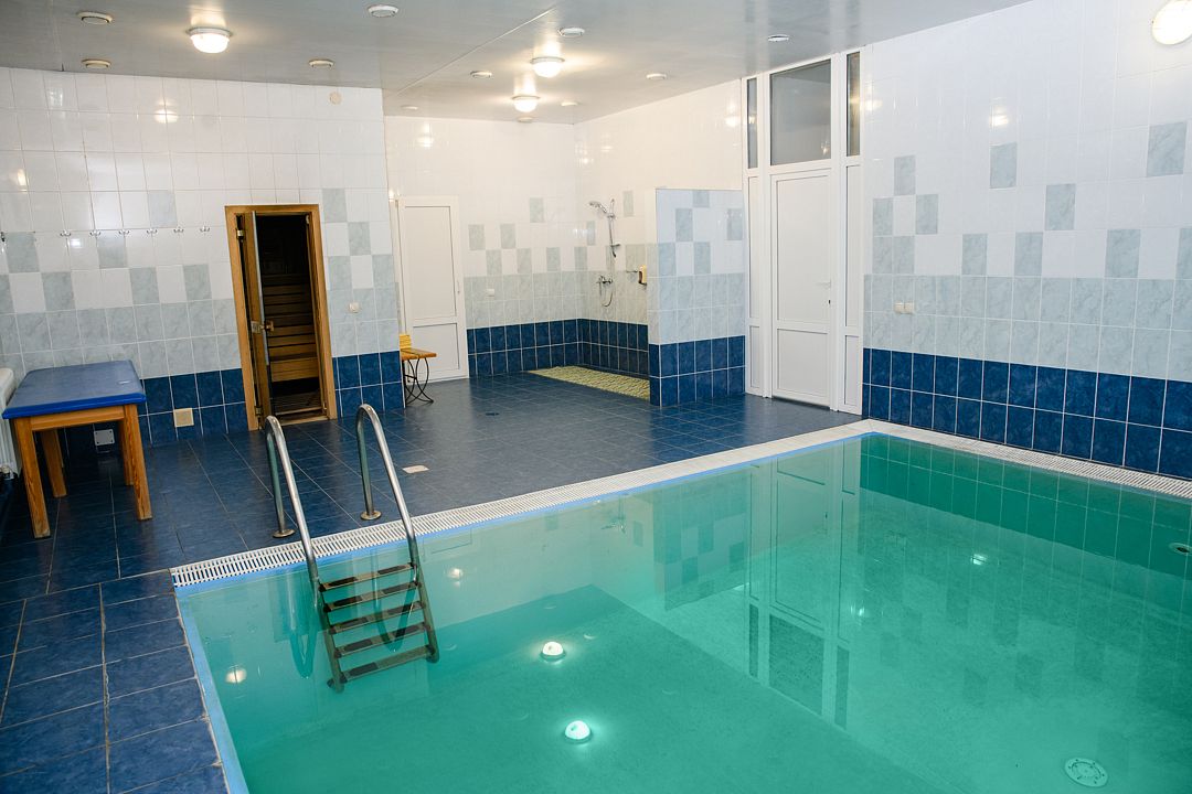 Тип бассейна: крытый бассейнВода в бассейне: подогреваемый бассейнРядом с бассейном: шезлонгиТемпература в бассейне: 26 °CРазмеры: 12 x 25 мПлощадь: 300 м²Время работы: от 10:00 до 22:00Глубина: 180 смРаздевалки, душевые, сауна, санузел.