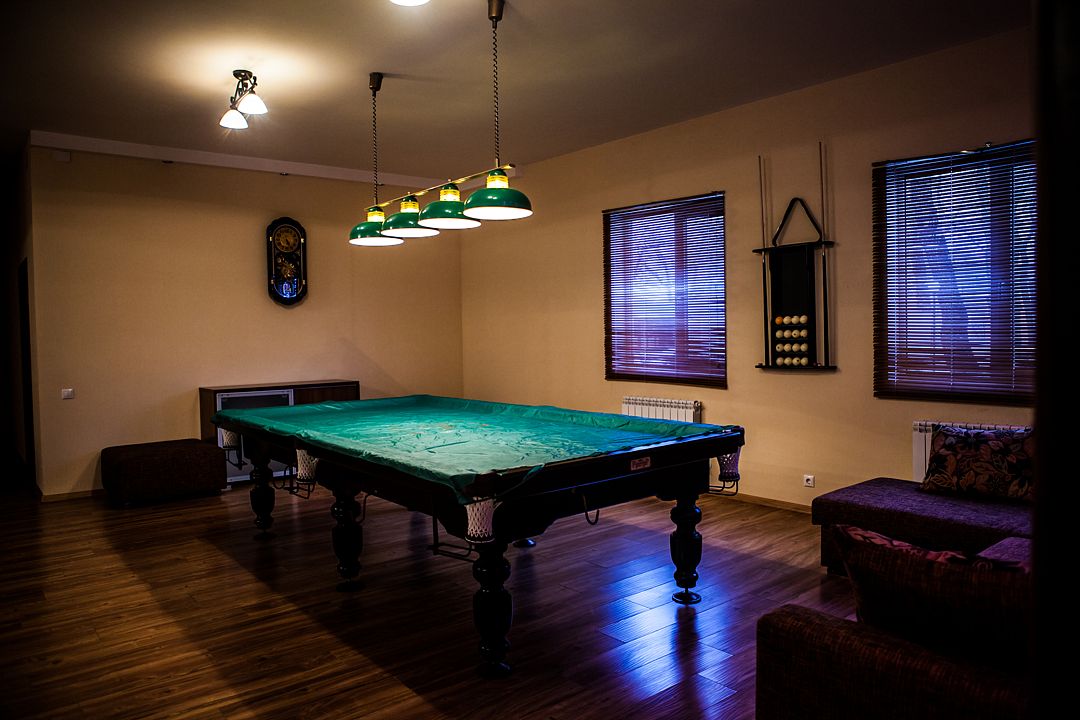 Здесь размещено 5 бильярдных столов, играет зажигательная музыка. Бар работает по предзаказу.