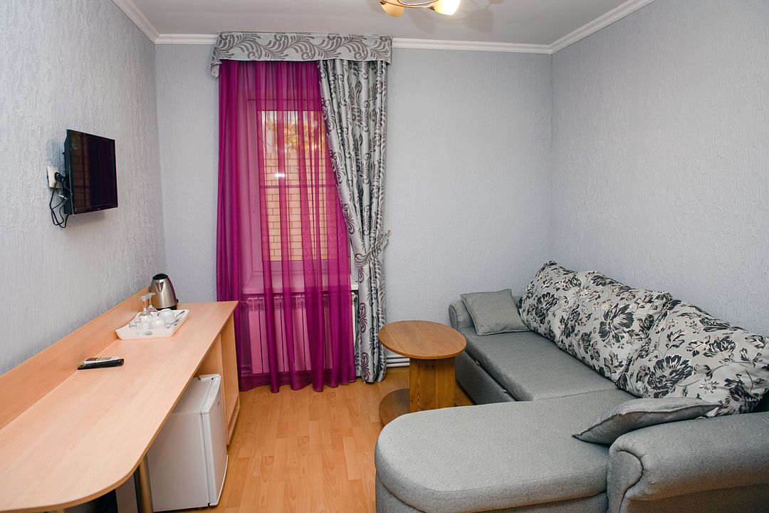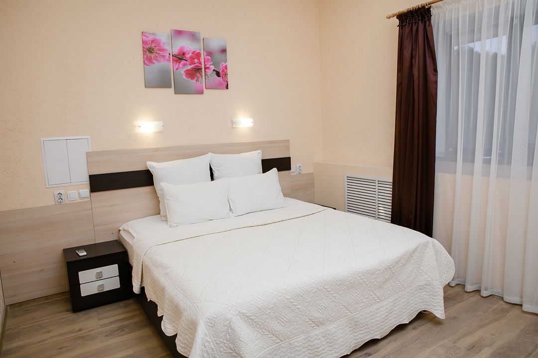 Стандарт Премиум — комфортабельный номер состоящий из гостиной с мягкой мебелью, шкафа, спальни с двумя раздельными кроватями; телевизор, сплит-система, холодильник, журнальный столик, телефон, сан узел с душем, фен. Находится на втором этаже двухэтажного корпуса.