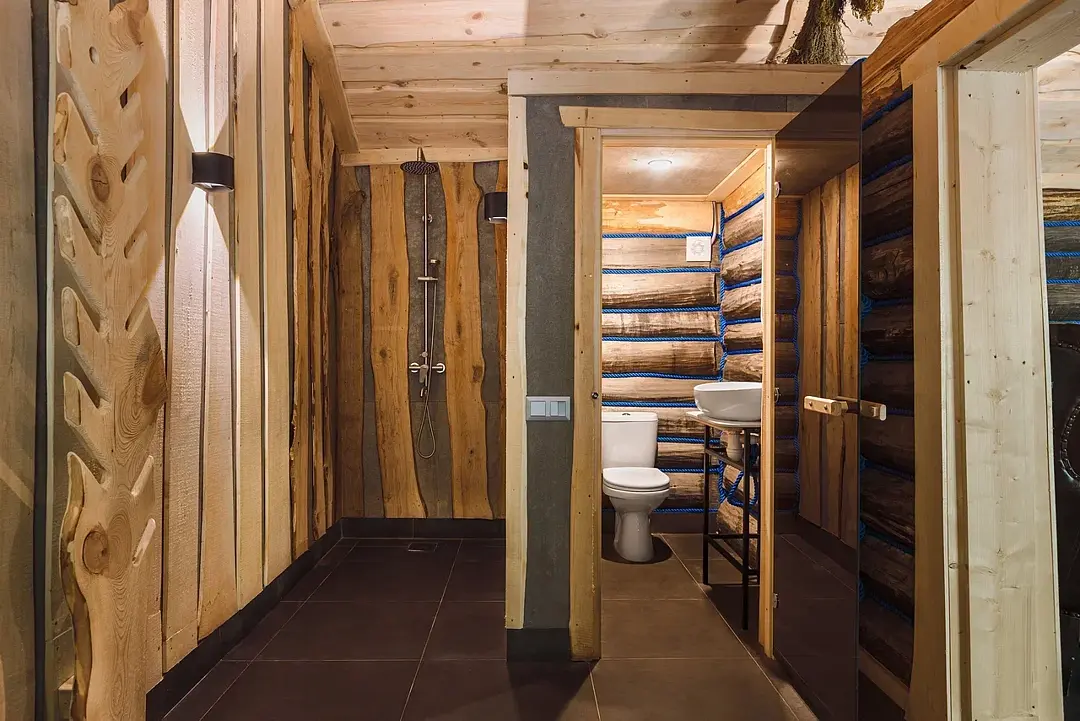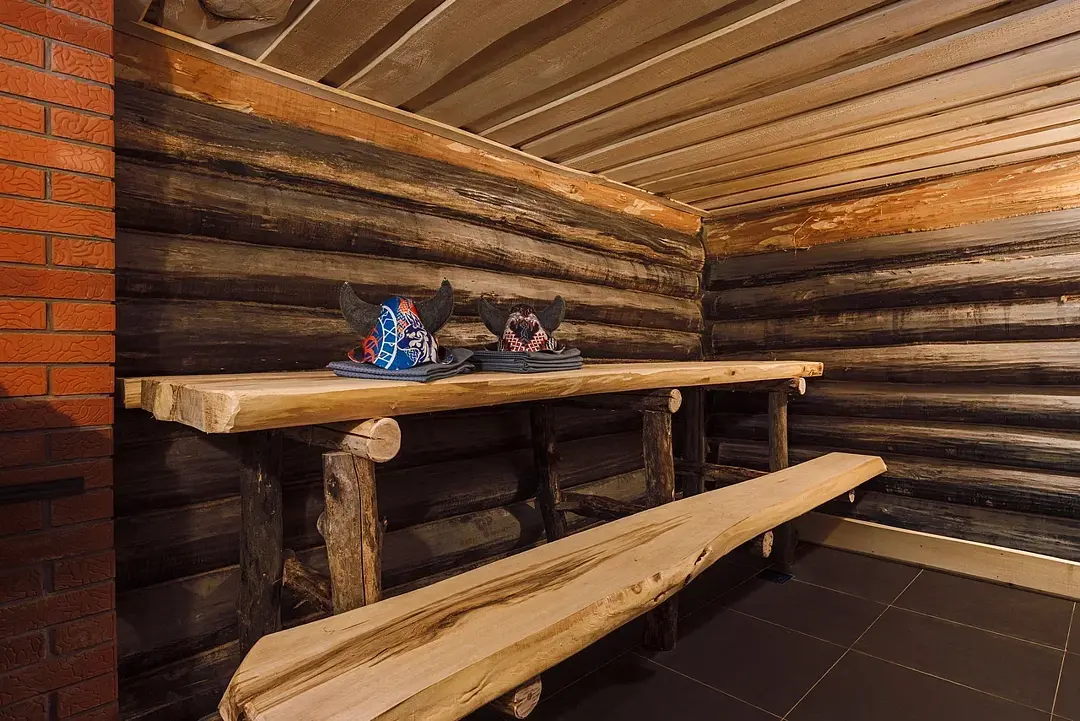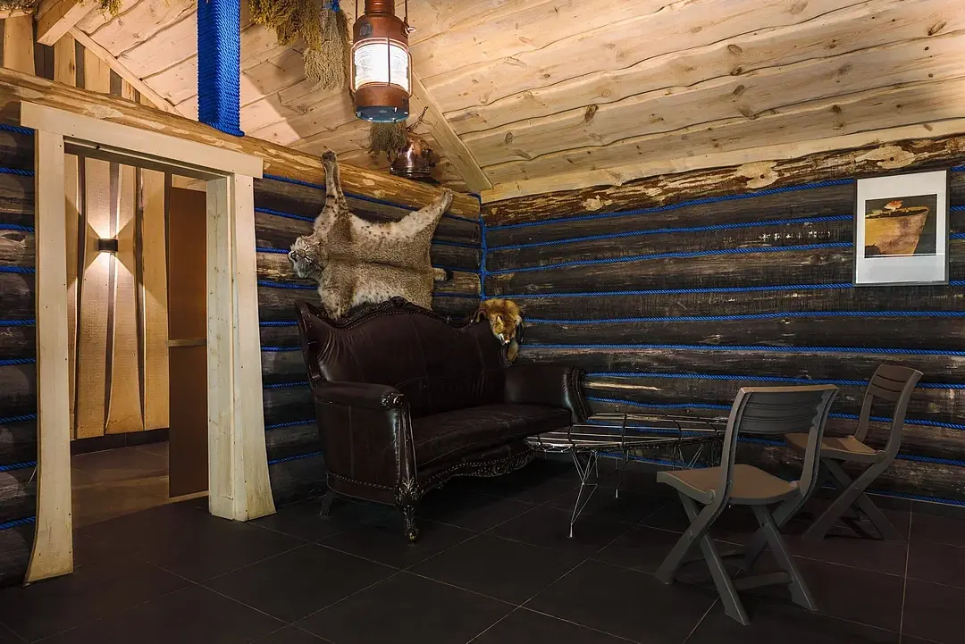 Декор из экологичных материалов напоминает о драккарах — боевых кораблях, на которых викинги покоряли северные моря. Запах кедра подчеркивает атмосферу дикого леса, а настоящие шкуры и чучела животных добавляют нотки охотничьей романтики.