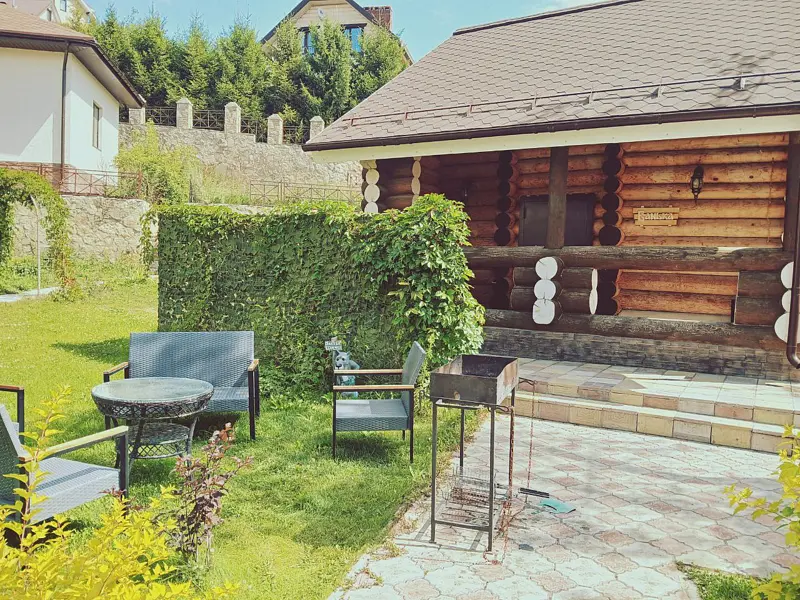 На территории дома есть русская баня, беседка вместимостью до 50 человек, кафе с детской зоной, прокат велосипедом и рыболовный магазин.