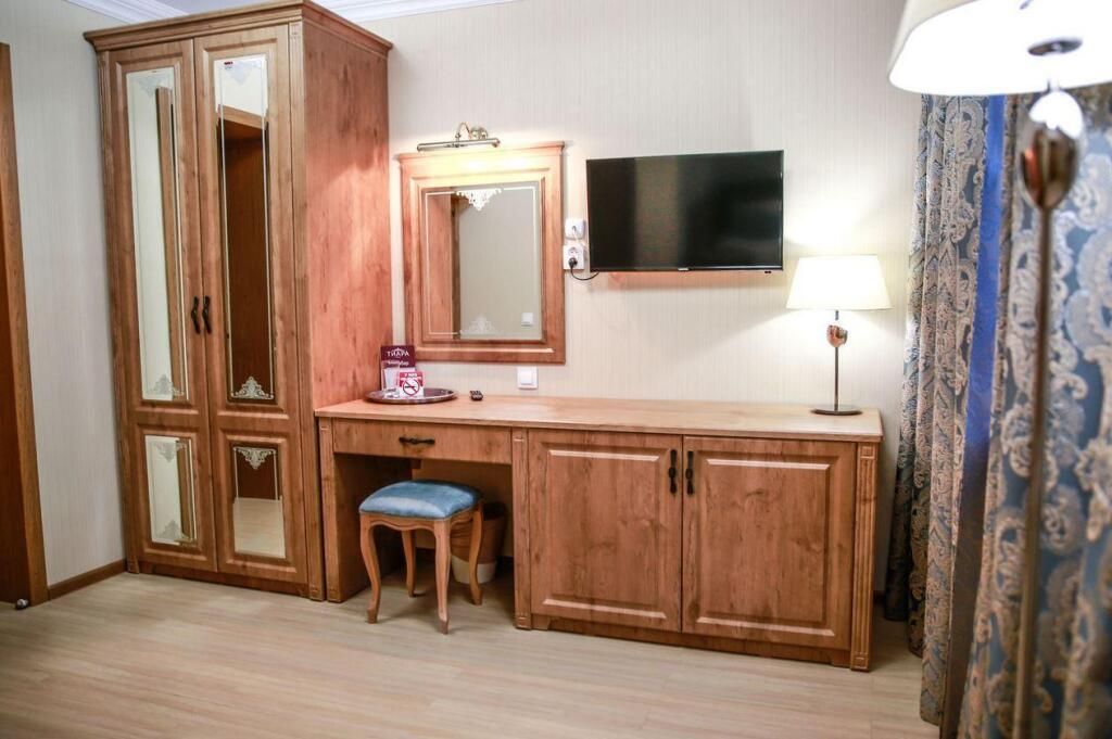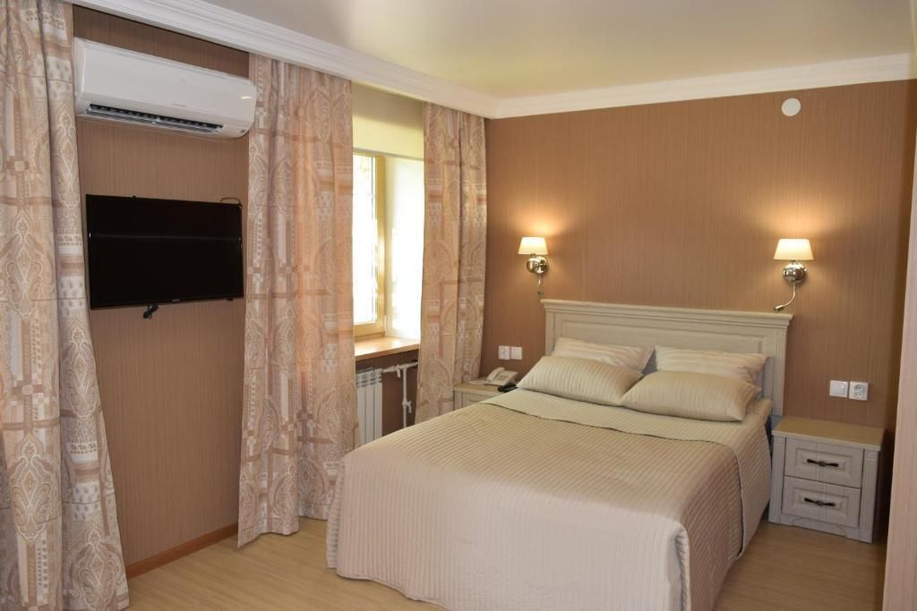 нояб. 2016 г.КомандировкаОтель в центре города с новой качественной обстановкой в номере и хорошим бельём. Предоставили посуду по запросу, предложили бесплатный чай. Парковка перед гостиницей. Гостиница с улицы украшена гирляндами к Новому Году.