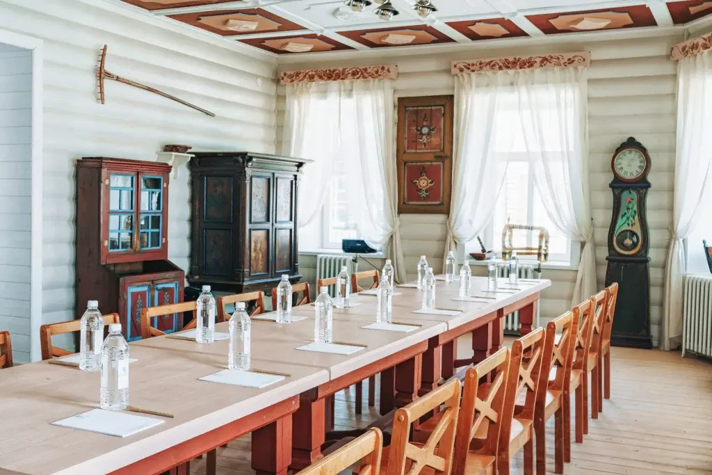 Стильный зал в старорусском стиле отличное решение для проведения мастер-классов и тренингов.
