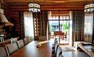 Для дружных застолий — просторная обеденная зона с большим столом на 14 персон. В тёплое время года компания может собраться на открытой веранде дома. На втором этаже есть ванные комнаты с душевой кабиной, на первом — также находится туалетная комната.