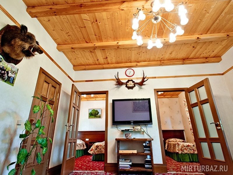 Коттедж рассчитан на проживание 10 человек (5 двухместных номеров). Сердце этого дома — гостиная с камином, в которой можно собраться кругом близких людей, обсудить события дня, богатую эмоциями охоту и насладиться романтикой загородной жизни.