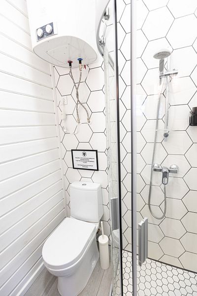 Номер со всеми удобствами для проживания от 1 до 4 гостей с собственной ванной комнатой, кухонной зоной и террасой.