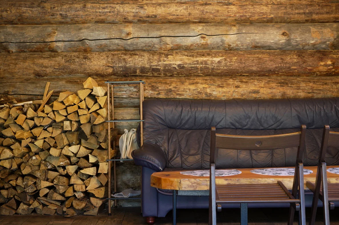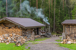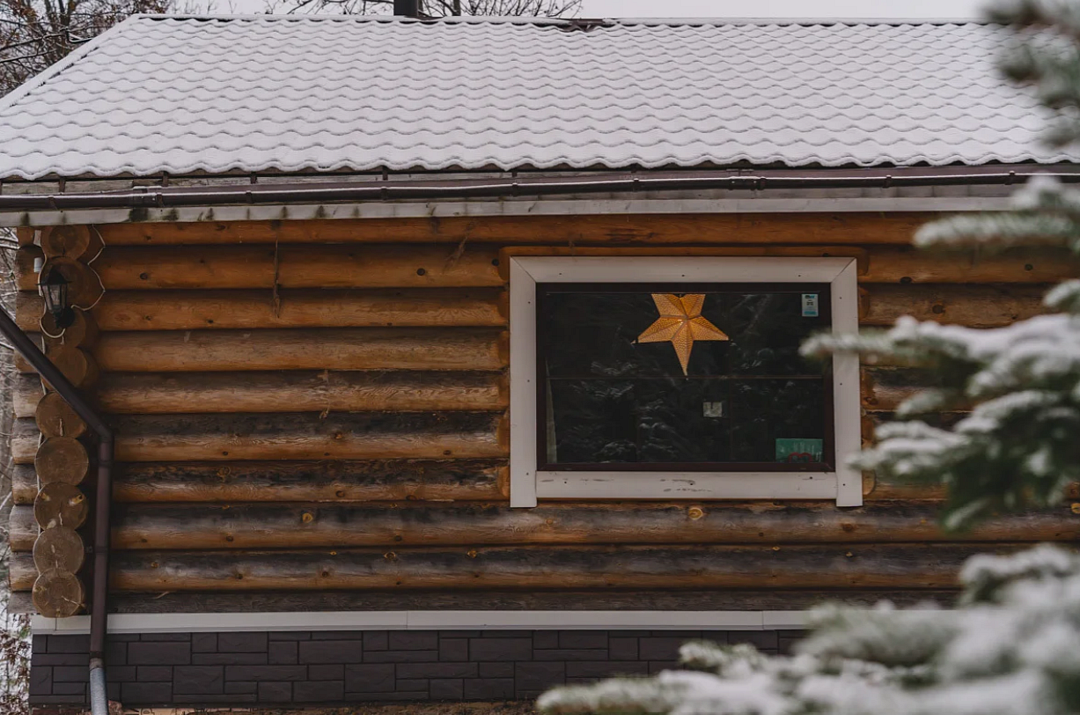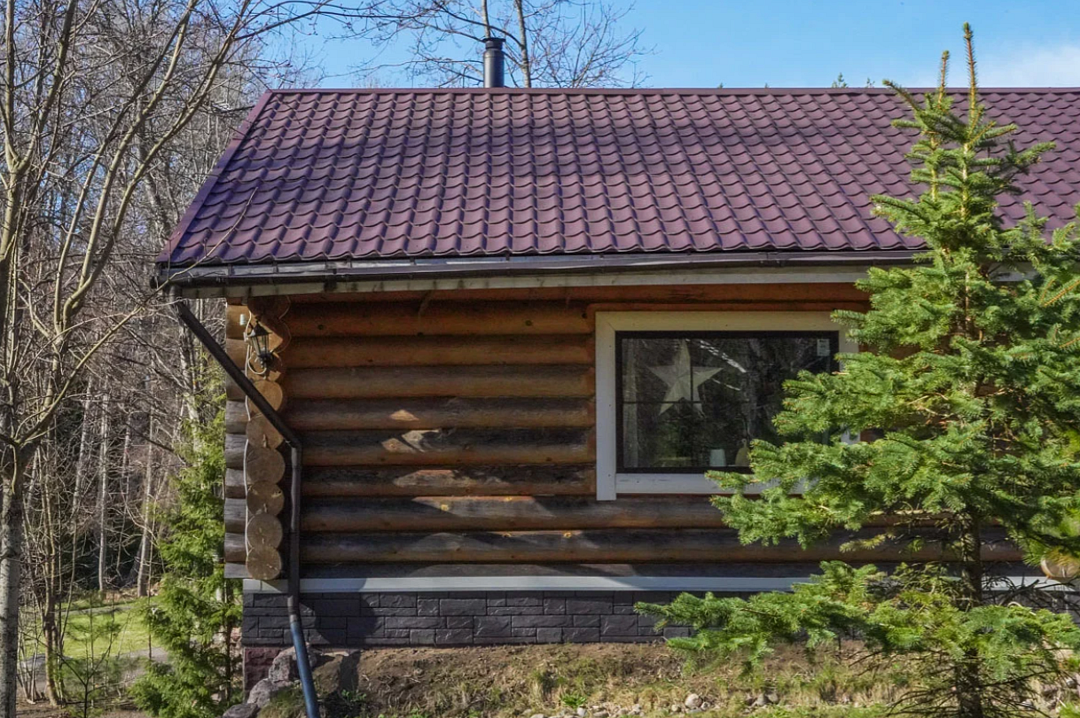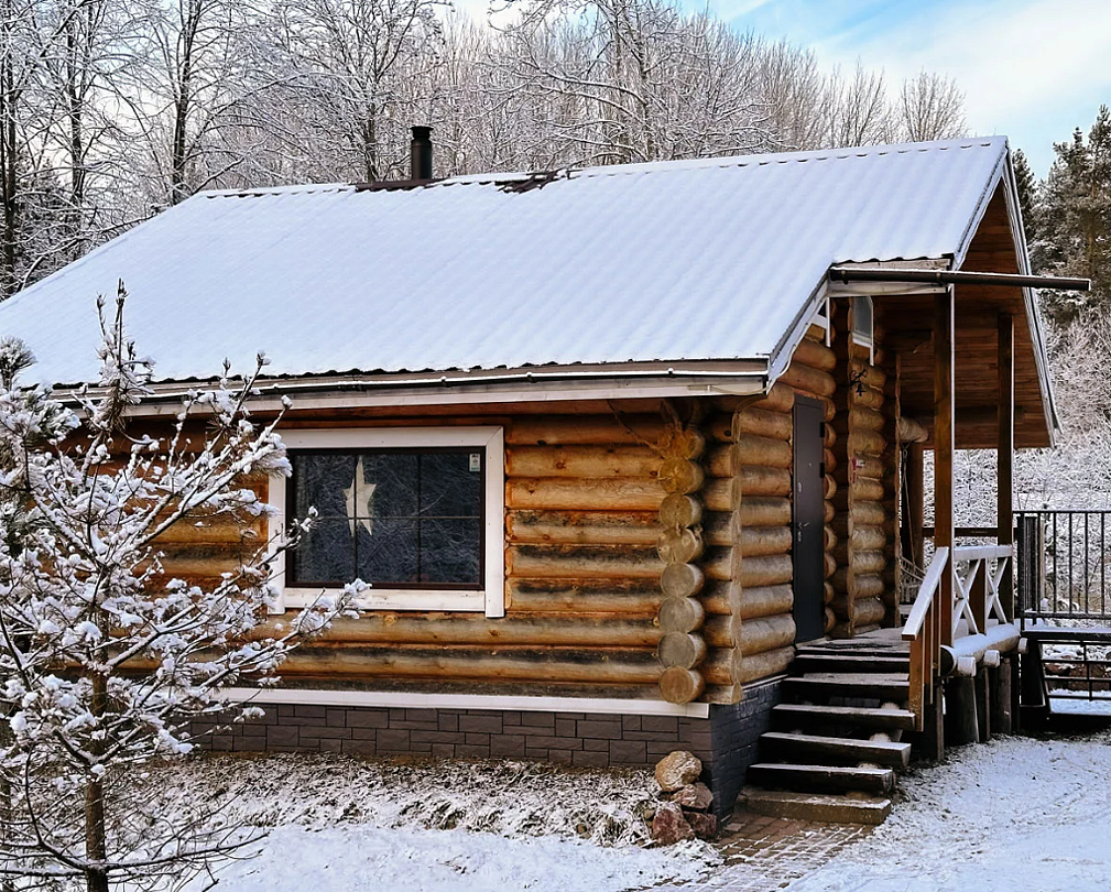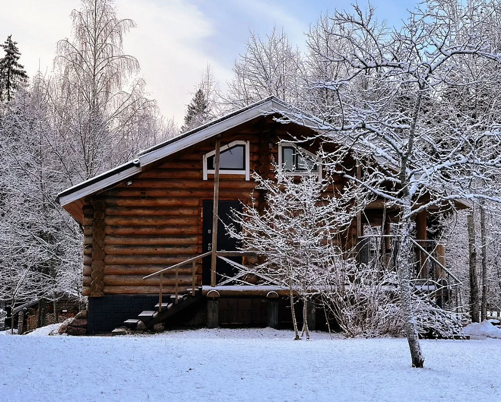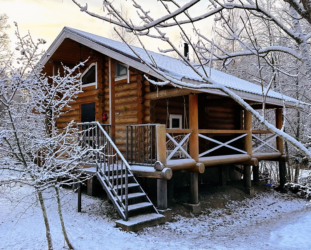 Маленький 2-этажный бревенчатый дом с сауной и камином