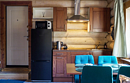 - оборудованная кухня (плита, чайник, холодильник, комплект посуды для приготовления и сервировки);