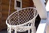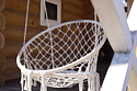По периметру дома на первом этаже расположилась большая терраса 55 м² с местом для отдыха и качелью.
