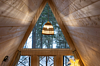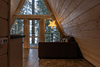 Новый уютный А-образный домик с террасой и панорамным видом на озеро, расположенный на склоне.