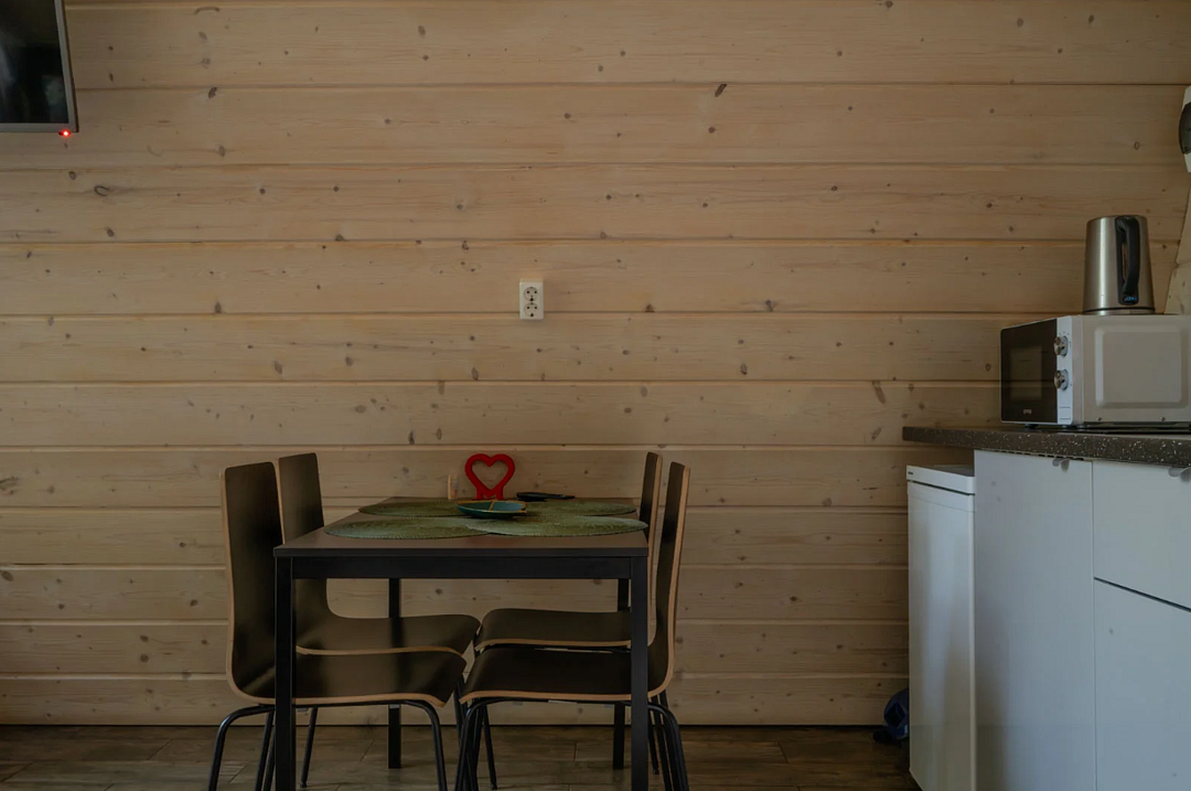 Изюминкой дома является настоящий камин в основной комнате для атмосферных, тёплых вечеров.