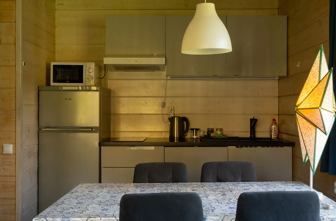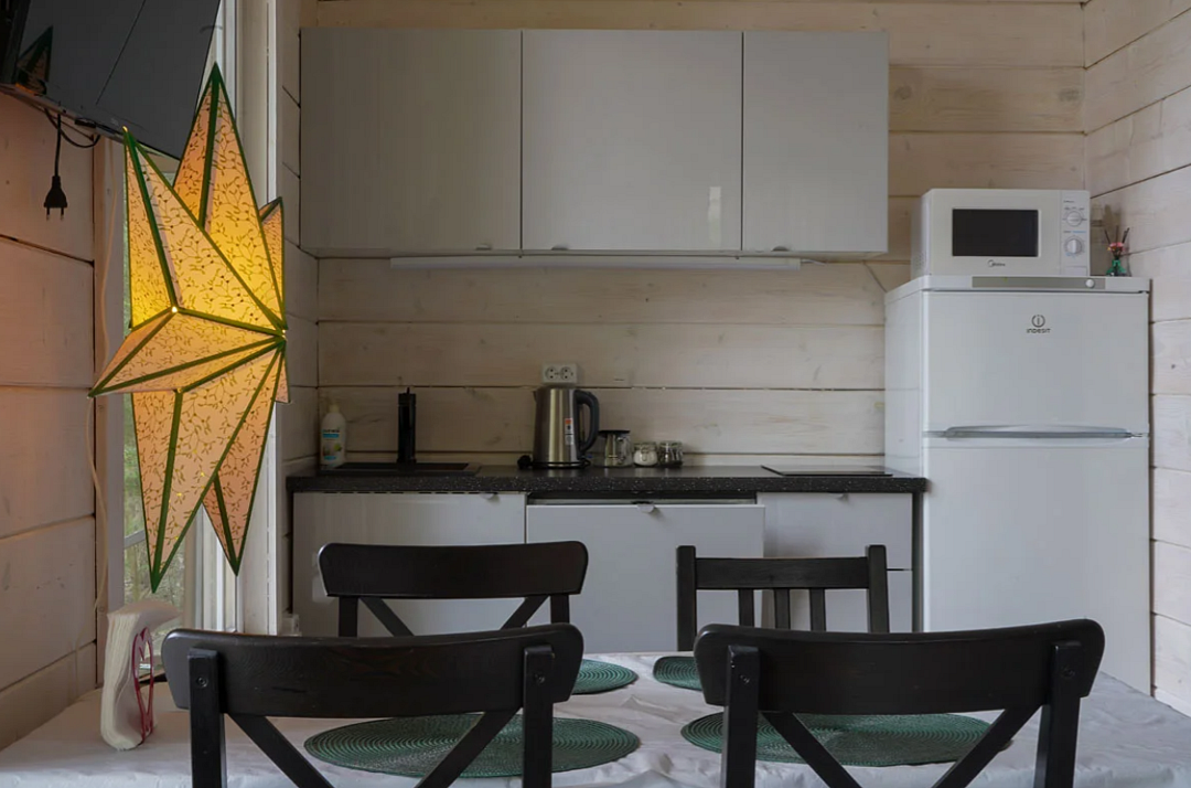 - оборудованная кухня (холодильник, варочная поверхность, микроволновка, чайник);