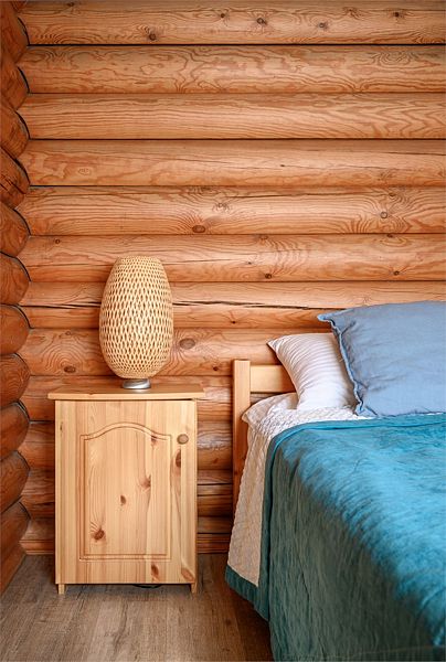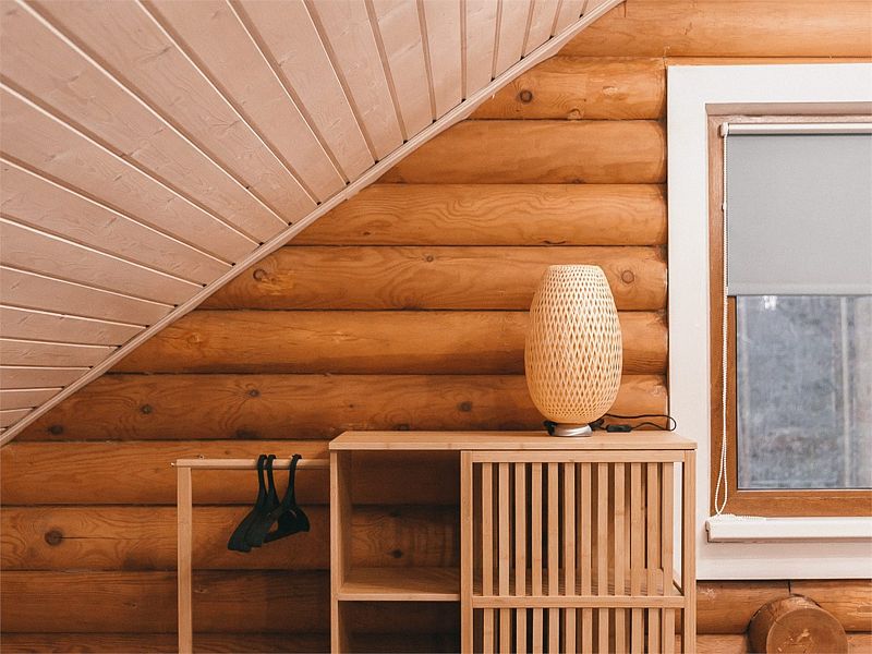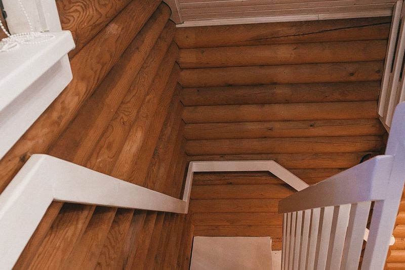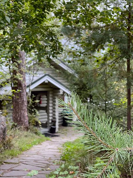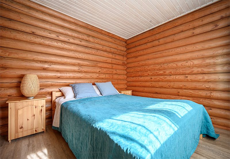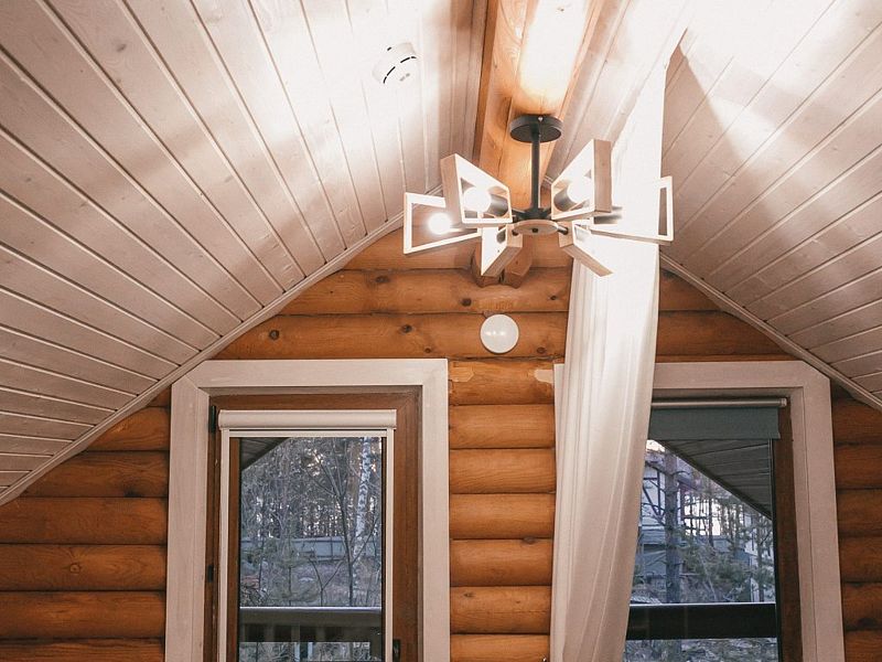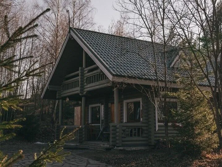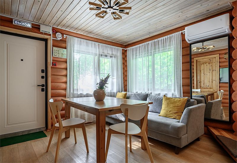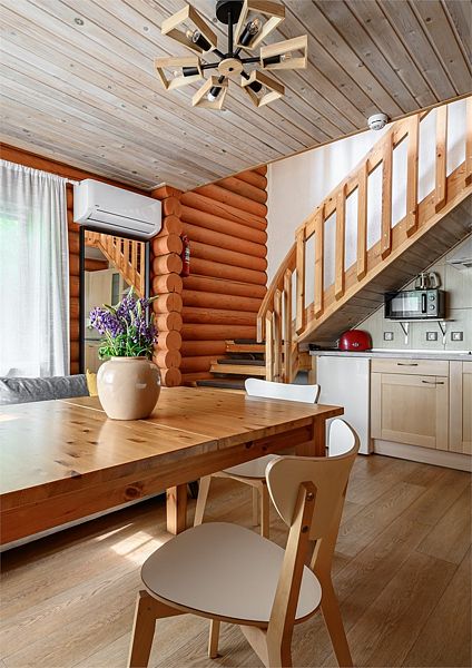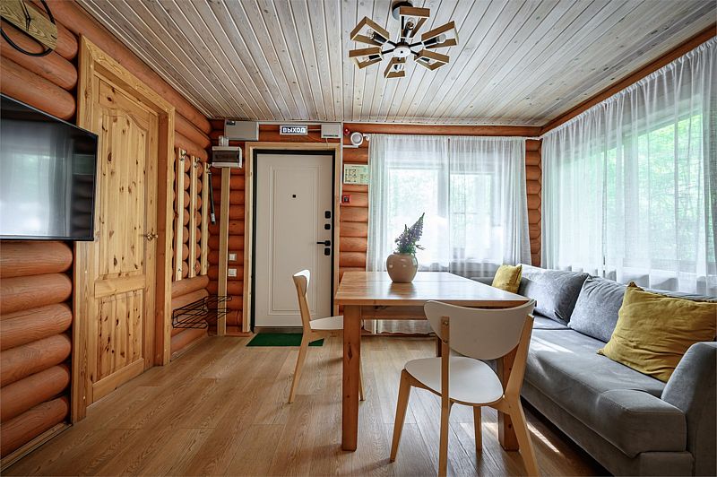 Бревенчатый отдельностоящий коттедж, выполненный в скандинавском стиле.