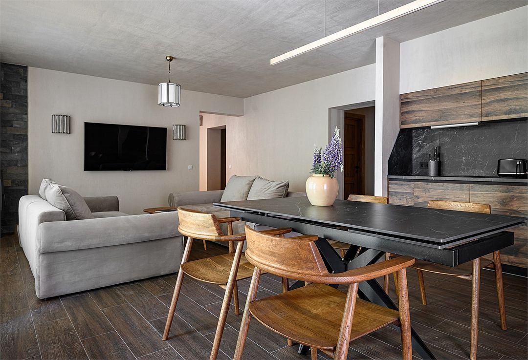Семейный отдыхДостоинстваВо второй половине дня приехали, в первой половине следующего уже уехали. Техника и постельное белье норм, даже пол подогревается. Можно взять в аренду настольные игры.