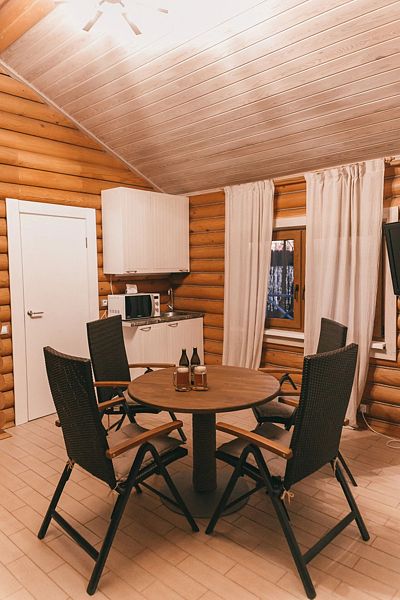 Постояльцам предложено несколько видов принадлежностей для барбекю. В коттеджах есть обеденная и кухонная зоны — готовить здесь удобно, хранить продукты можно в холодильнике. На территории популярна рыбная ловля.
