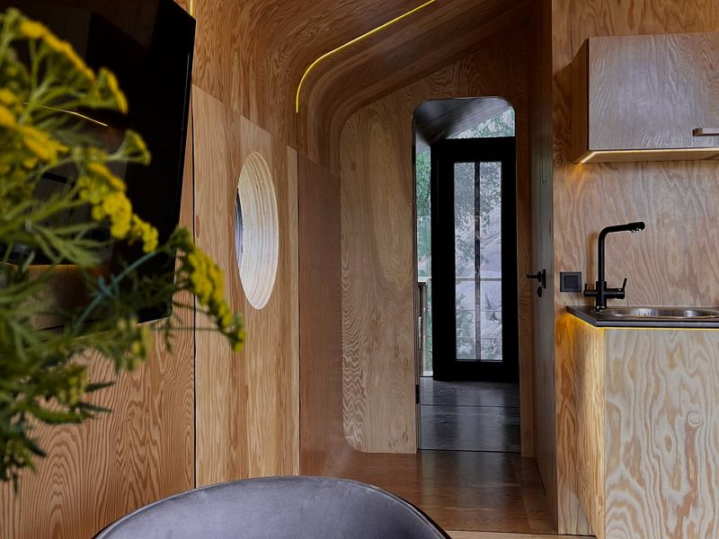 на втором – спальня-студия с диваном и выходом на открытый балкон