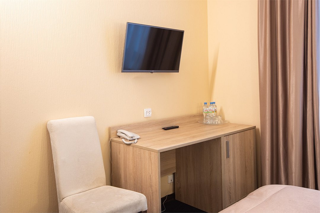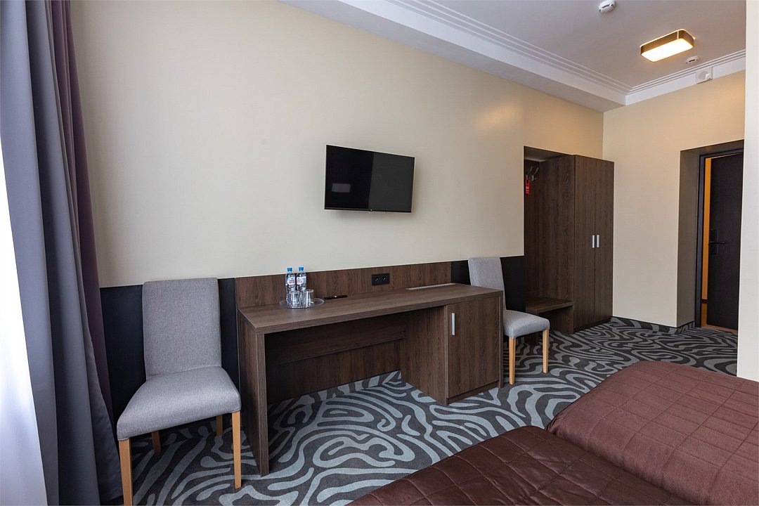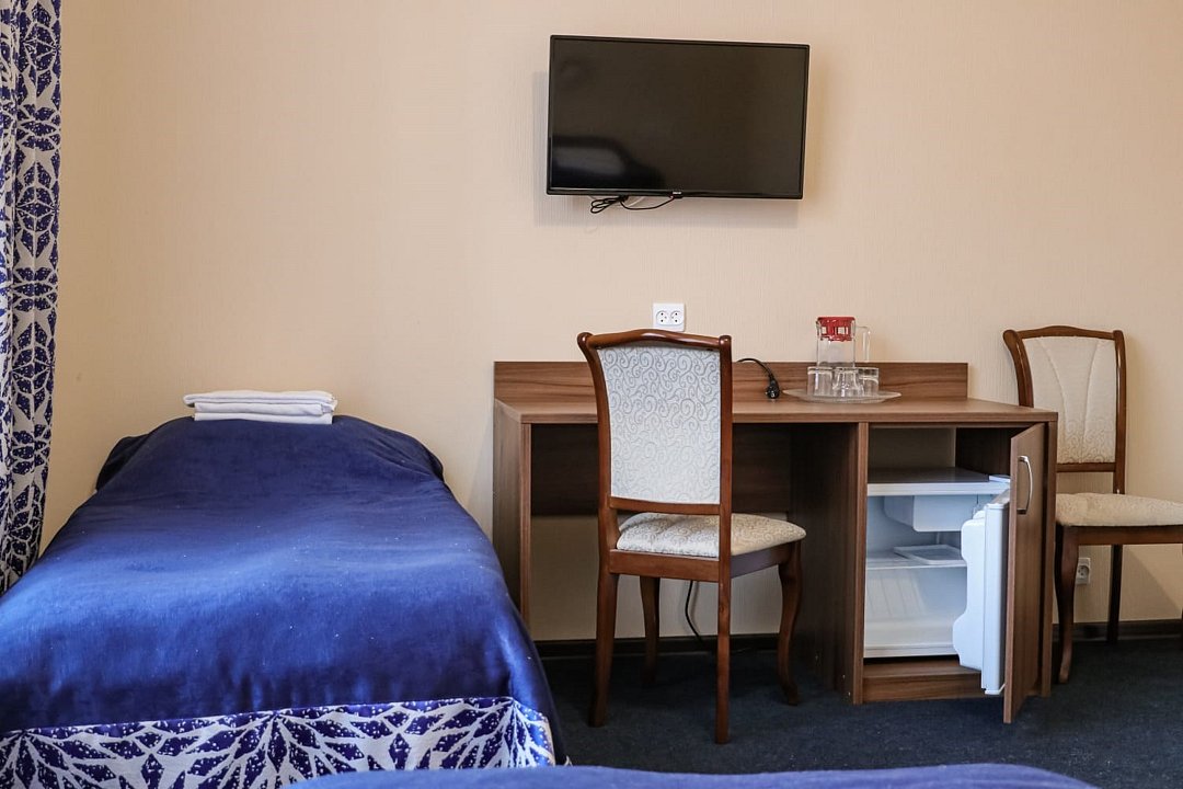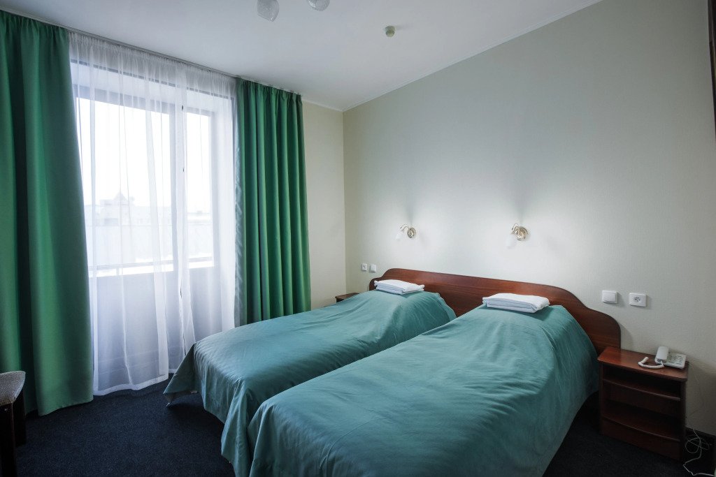 кабельное телевидение, Wi-Fi, светильник, фен, электронные замки, обогреватель, банные полотенца, тапочки, гигиенические средства, две односпальные кровати, стулья, шкаф для одежды, вешалки, багажная тумба, зеркало, обслуживание номеров, унитаз, раковина, мягкая мебель, ковровое покрытие, отопление, душ, вид на город, кулер на этаже, вид во двор, стаканы, туалетные средства, внутренний телефон, мини-холодильник, москитная сетка, телевизор со Smart TV, номер для некурящих, рабочий стол, фумигатор, уборка номера, вешалки-плечики, бутилированная вода, затемняющая штора, без питомцевВ гостиничном номере