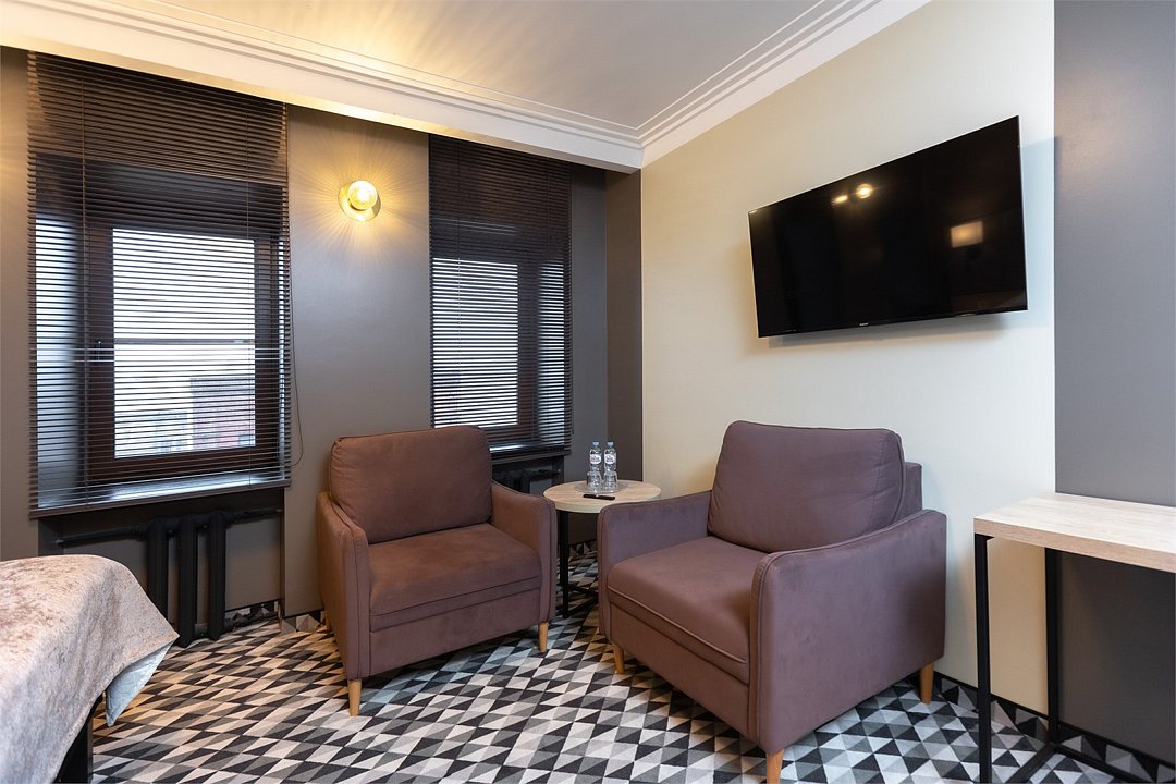 Гостиница предлагает размещение класса «Эконом» для одного или двух человек. Номерной фонд насчитывает 2 номера данной категории, на 5-ом и на 6-ом этажах. Все номера удобны для проживания и включают гостиную и душевую. В номере имеются: 2 односпальные кровати, которые стоят рядом, телефон, телевизор, рабочее место, шкаф для одежды с плечиками, набор полотенец, индивидуальные средства гигиены. В ванной комнате есть туалет, душ, раковина, зеркало. Окна номеров выходят на тихую дворовую территорию. Покрытие пола – ковролин. Площадь номера составляет 15-18 м2. В данной категории номера запрещено курение.Услуги и удобства