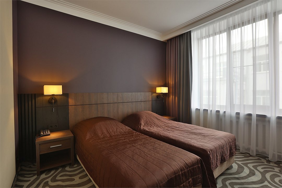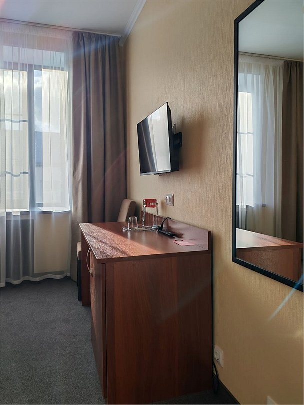 Гостиница предлагает размещение в двухместных номерах категории "Стандарт" для одного или двух человек (номер с дополнительной кроватью – для трёх человек). В номерах данной категории сделан ремонт. Номерной фонд насчитывает 49 номеров данной категории, с 3-ого по 7-ой этажи. Все номера удобны для проживания и включают гостиную и душевую. Окна номеров выходят как на центральный проспект города, так и на тихую дворовую территорию. Покрытие пола – ковролин. Площадь номера составляет 15-18 м2. Возможно размещение с домашними животными(по согласованию), покрытие пола - ламинат. Гипоаллергенные номера(по согласованию), покрытие пола - ламинат. Курение в номере запрещено!Услуги и удобства