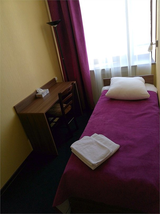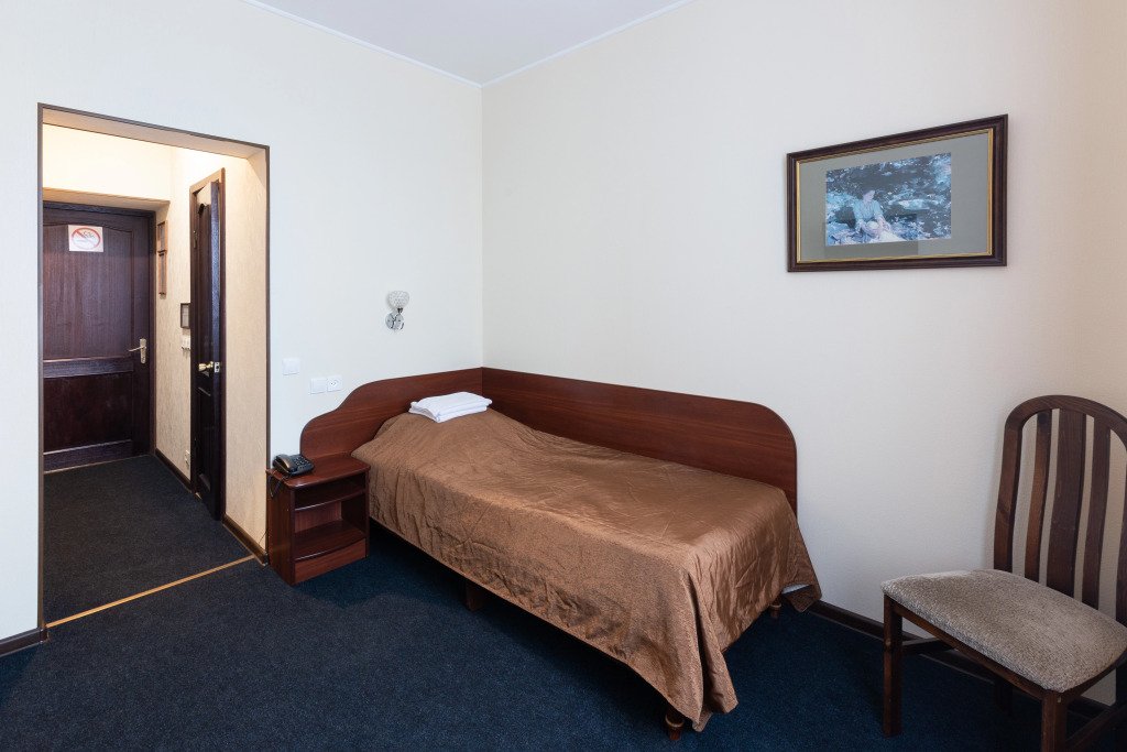 Гостиница предлагает размещение класса "Стандарт» для одного человека. Номерной фонд насчитывает 12 номеров данной категории, с 3-ого по 6-ой этаж. Все номера удобны для проживания и включают гостиную и душевую. В номере имеются: 1 односпальная кровать, телефон, телевизор, рабочее место, холодильник, шкаф для одежды с плечиками, набор полотенец, индивидуальные средства гигиены. В ванной комнате есть туалет, душ, раковина, зеркало. Окна номеров выходят во двор. Покрытие пола – ковролин. Площадь номера составляет 14м2. Во всех номерах данной категории запрещено курение.Услуги и удобства