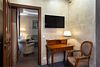 два телевизора, кабельное телевидение, Wi-Fi, телефон, кондиционер, светильник, настольные лампы, фен, душевая кабина, ванна, дополнительная ванная комната, биде, теплый пол, халаты, банные полотенца, тапочки, гигиенические средства, двуспальная кровать, кресла, тумбы, стулья, шкаф для одежды, вешалки, журнальный столик, письменный стол, зеркало, пуфики, две комнаты, письменные принадлежности, обслуживание номеров, унитаз, раковина, гостиная зона, ковровое покрытие, отопление, вид на город, ламинат, стаканы, туалетные средства, раскладной диван, телевизор с плоским экраном, мини-холодильник, шкаф-купе, уборка номера, бутилированная вода, без питомцевВ гостиничном номере