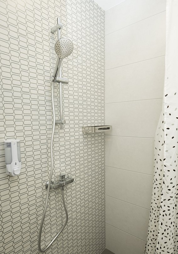 Чтó ещё выяснилось во время эксплуатации номера и о чём нужно подумать руководству отеля? Во первых, в ванной семейного номера есть только крючки под 4 полотенца на двери. И всё. Как таковая отсутствует полочка под зеркалом для принадлежностей (и никакой тумбочки тоже нет) - все зубные щётки, мыло, расчёски, бритвы и тд приходится умешать на компактной раковине. Вторая альтернатива - пол. И всё. Подсветки над зеркалом для бритья - просто нет (мужчины поймут). Учитывая тёмную, хотя и очень модной расцветки, плитку - освещения не хватает. В гостиной имеется стол, пуфик, немного непонятного назначения скамейка с подушками во всю длину стены, и могут стоять 2 еврораскладушки, что удобно для гостей с детьми. У кроватей в спальне есть и тумбочки и розетки, тут вопросов нет.