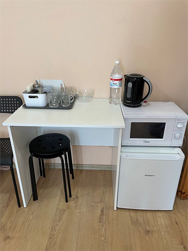 телевизор, кабельное телевидение, Wi-Fi, интернет, фен, микроволновая печь, обогреватель, ванная комната, теплый пол, гигиенические средства, двуспальная кровать, односпальная кровать, ортопедический матрас, стулья, шкаф для одежды, вешалки, набор посуды, чайник, унитаз, раковина, обеденная зона, отопление, отдельный вход в номер, душ, вид на город, стаканы, кухонная утварь, столовые приборы, стол, туалетные средства, мини-холодильник, кухонный уголок, москитная сетка, номер для некурящих, фумигаторВ гостиничном номере