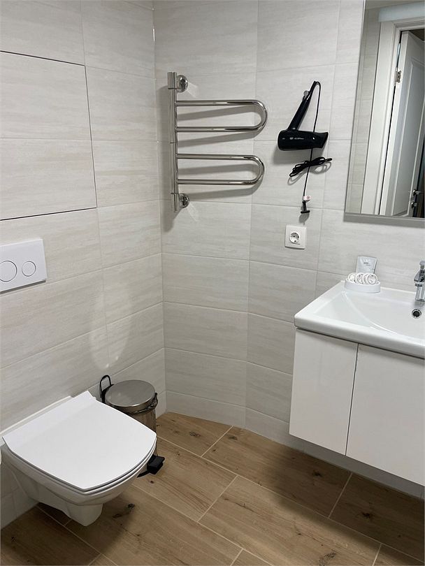 телевизор, кабельное телевидение, Wi-Fi, интернет, холодильник, фен, плита для приготовления пищи, микроволновая печь, ванная комната, теплый пол, гигиенические средства, косметические средства, диван, стулья, шкаф для одежды, вешалки, обеденный стол, зеркало, кухня, набор посуды, чайник, унитаз, раковина, отдельный вход в номер, душ, вид на город, плиточное покрытие, кухонная посуда, стаканы, кухонная утварь, столовые приборы, туалетные средства, раскладной диван, раскладное кресло, москитная сетка, телевизор со Smart TV, теплые полы, номер для некурящих, два дивана-кровати, фумигаторВ апартаментах