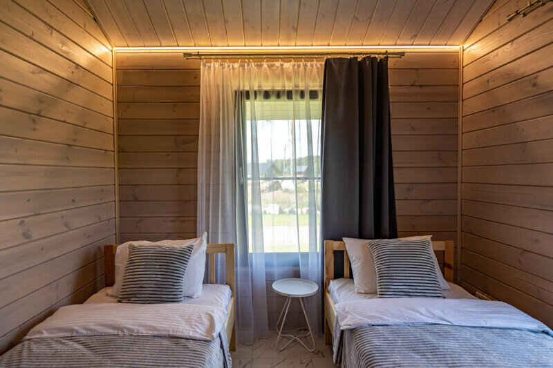 - Две спальни, на каждой кровати ортопедический матрас и комплект постельного белья из сатина