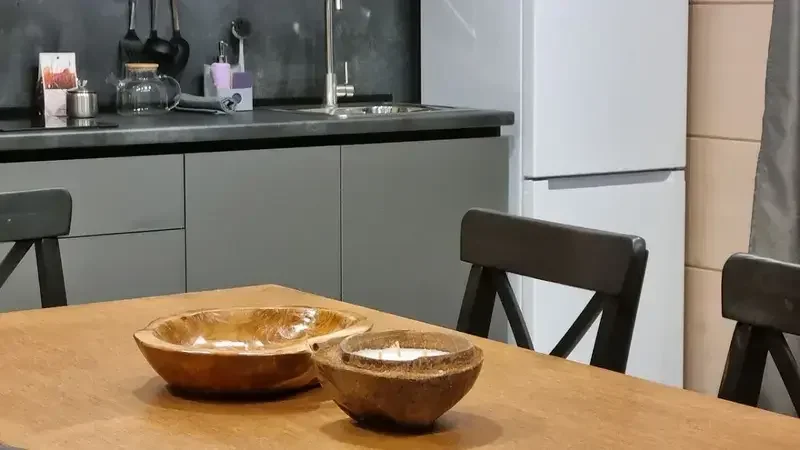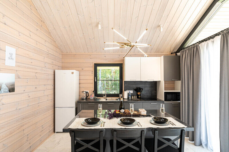 - просторная кухня со всей необходимой бытовой техникой и кухонной утварью;