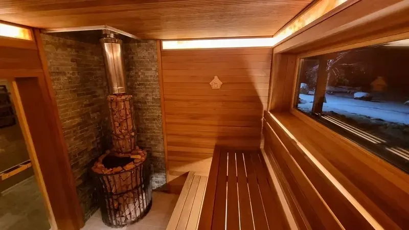 В доме есть всё необходимое для парения, средства гигиены, полотенца, тапочки, полотенца, килты, подстилки, шапочки. Халат можно спросить на ресепшен.