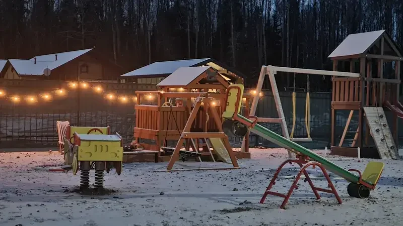 На территории клуба есть детская площадка с полем для игры в детский теннис и батутом, чтобы дети могли наслаждаться своим временем.