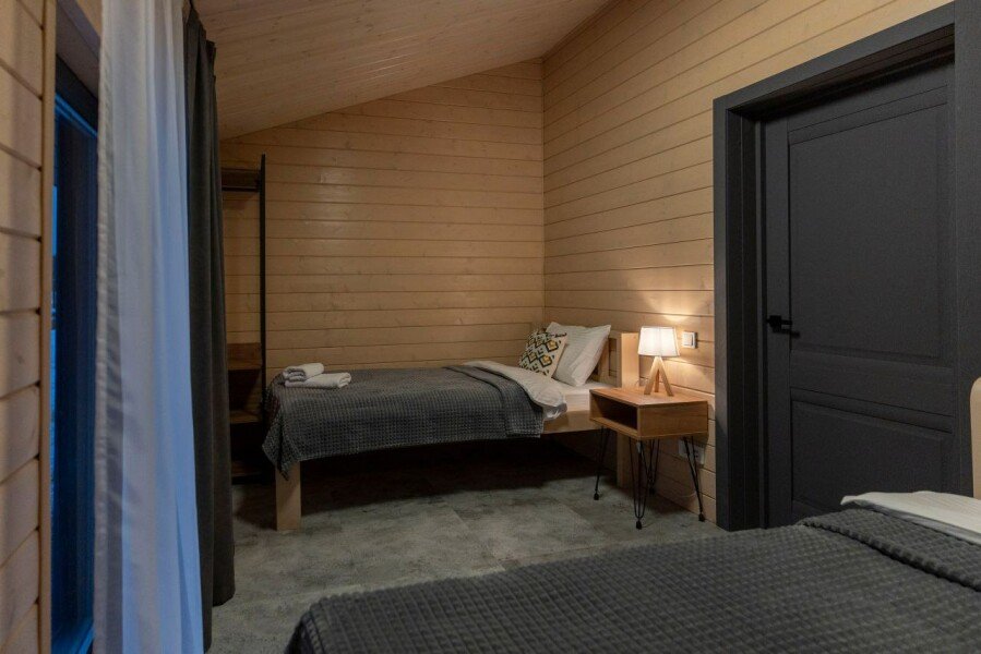 - в ванной комнате средства гигиены категории ЭКО (гель-мыло, гель для душа, шампунь, зубные щетки с пастой, ватные диски и палочки, пилочка для ногтей), 2 халата, банные полотенца;