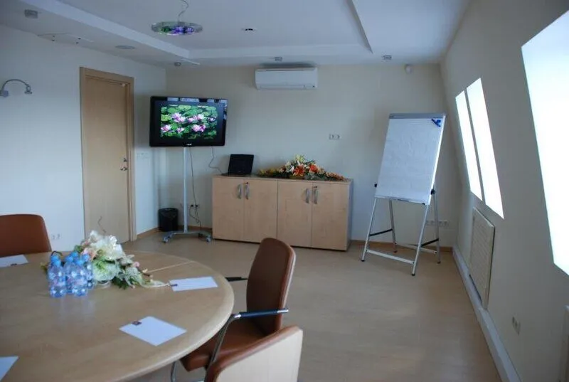 Идеальное место для проведения деловых переговоров и встреч с небольшим количеством участников. В зале установлен круглый стол для переговоров.