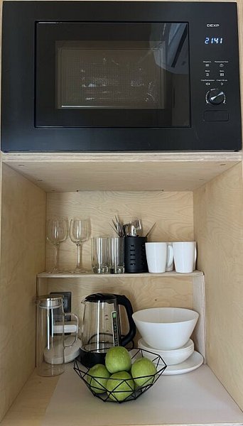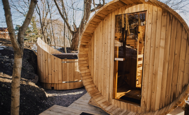 Сауна оснащена уникальным панорамным окном, что позволит не только расслабиться в тепле, но и насладиться бескрайними видами залива. Также есть оригинальный фито-бар, который позволит получить максимум пользы и удовольствия от посещения сауны.