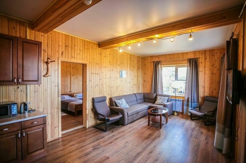 В номере просторная гостиная с раскладывающимся диваном и кофейным столиком, зона кухни со всем необходимым, большая ванная комната, уютная спальня и большая терраса 17 м2 с великолепным видом на Вуоксу.