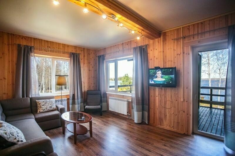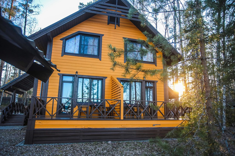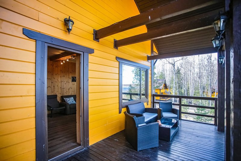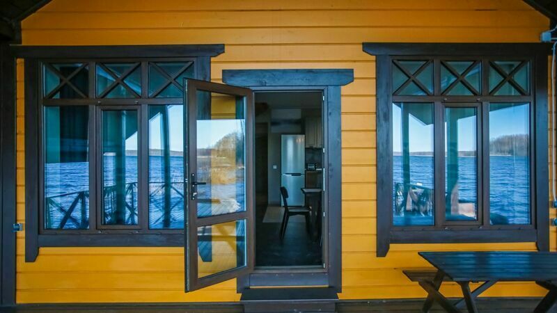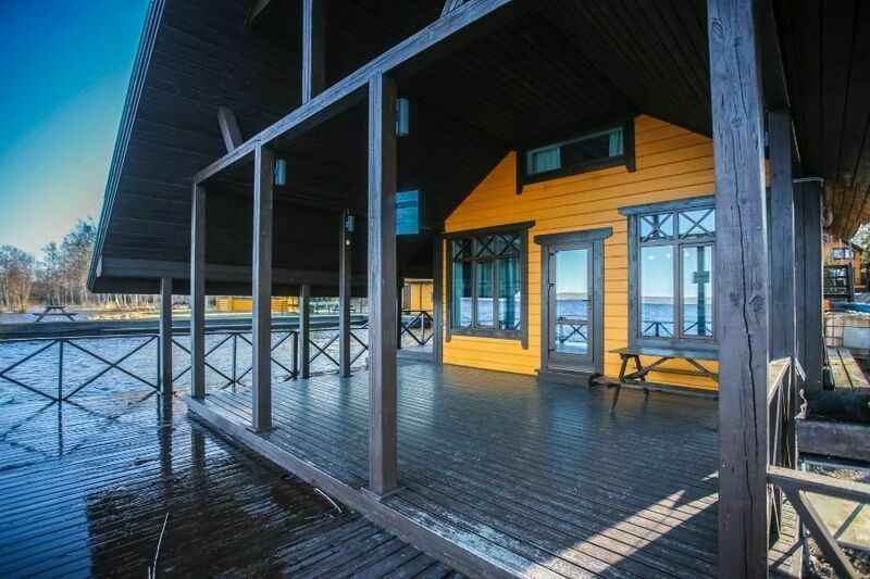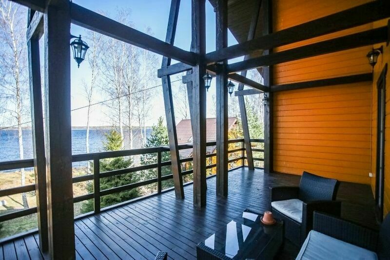 Большой двухэтажный дом прямо на берегу с большой террасой-пирсом, собственной сауной и кухней-гостиной, где из больших панорамных окон открывается великолепный вид на воду.