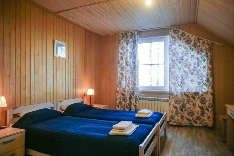 На Вилле синий речной цвет в оформлении гостиной и спален, природные материалы. Просторная гостиная с оборудованной кухней, обеденной зоной и диваном. Также на первом этаже находятся сауна с душевой, 2 спальни с раздельными кроватями. На втором этаже находится одна спальня с ванной комнатой, оборудованной душем. Рядом с Виллой есть свой мангал. Вместимость Виллы позволяет разместить 6 гостей, возможно дополнительное размещение 2х гостей в гостиной на первом этаже.